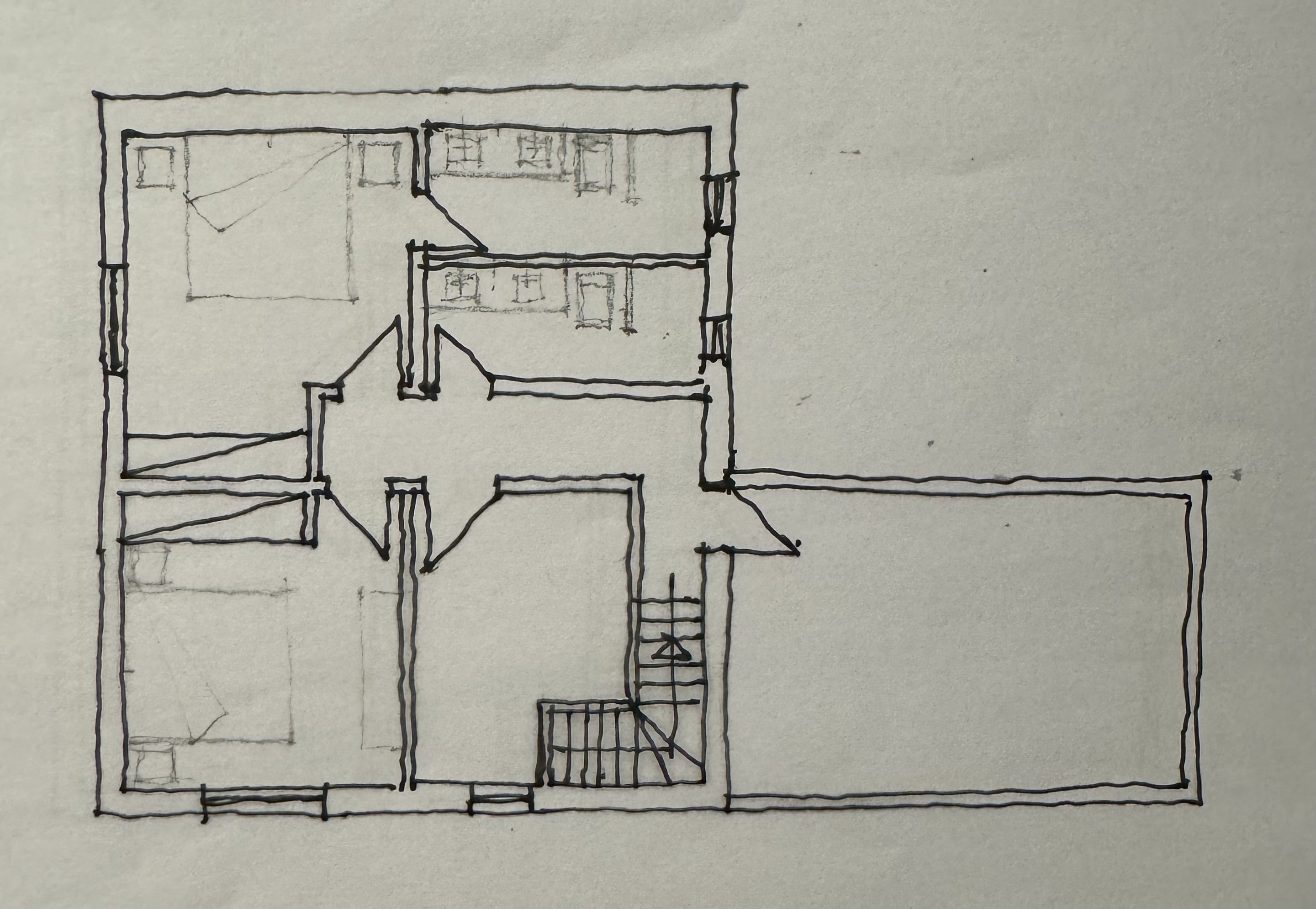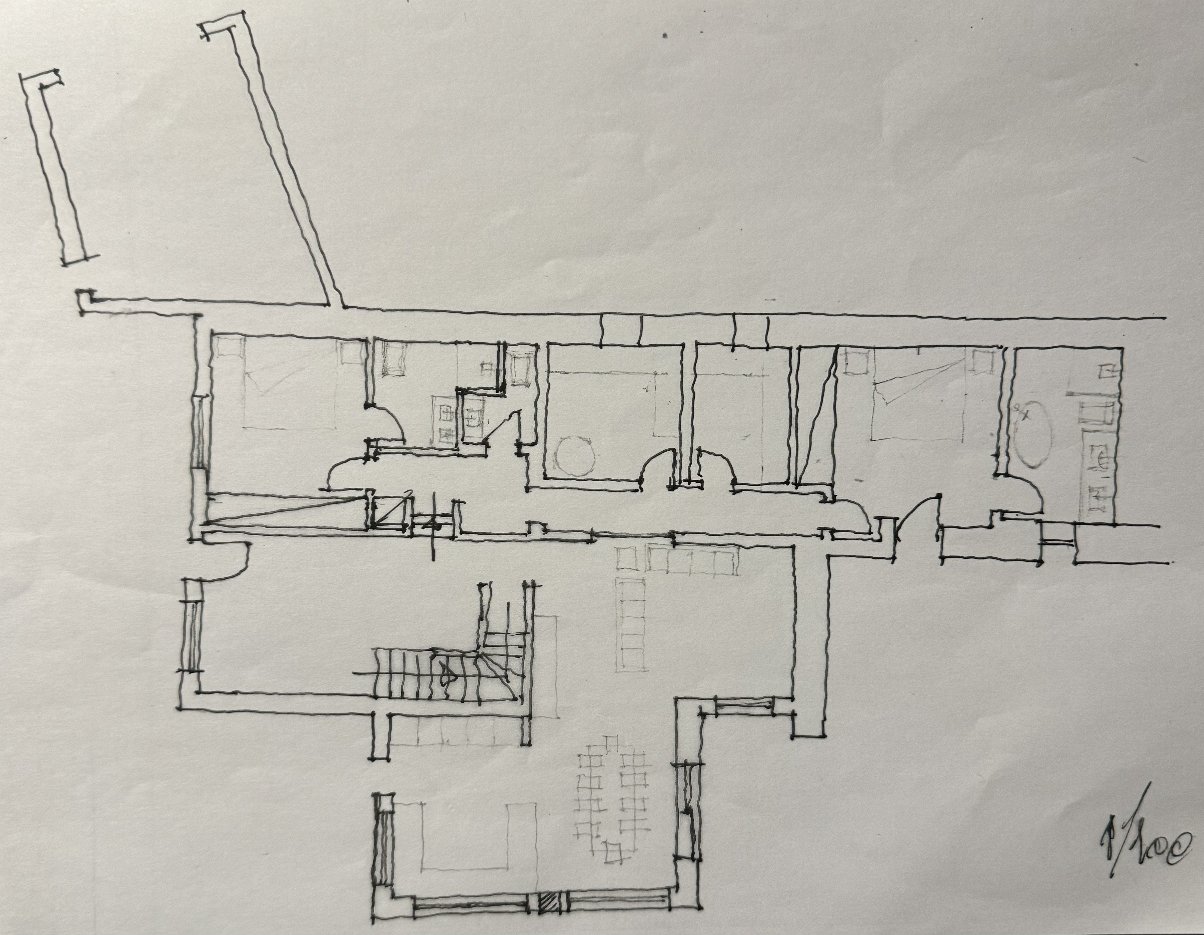 Positioned on an elevated plot, the residence has been redesigned with a focus on natural light, clean lines, and modern simplicity. The main living space centres around an open-plan layout with large windows capturing the landscape. A discreet guest WC serves the ground-floor living area.